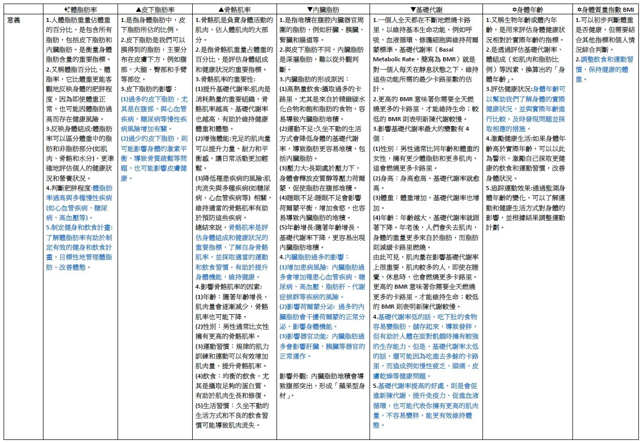 ♦ 身體質量指數 BMI 數值=體重 (kg)/身高平方(m)²
