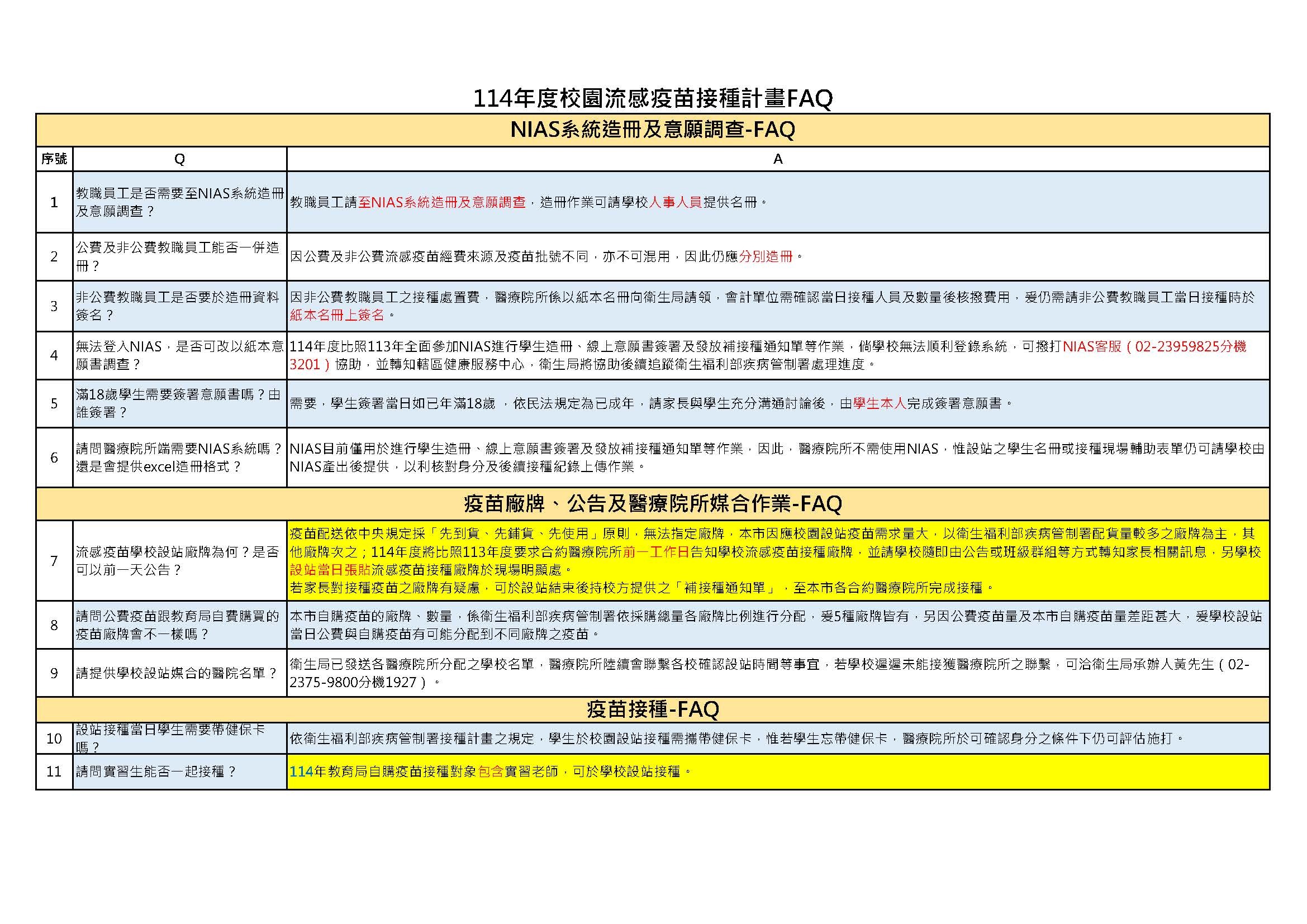 ♥️ 114年度校園流感疫苗接種計畫FAQ(夾帶檔案)簡摘如下: